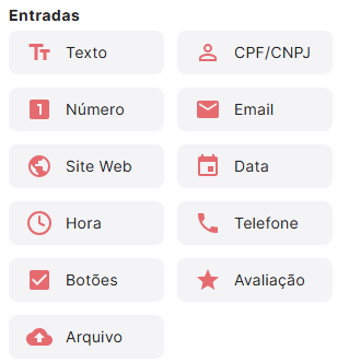Esses blocos são utilizados para solicitar algum dado ao contato e permanecem aguardando até que o contato responda ou até que o tempo de inatividade seja atingido. Cada bloco possui suas próprias configurações e pode armazenar as respostas do contato em uma variável definida por você.