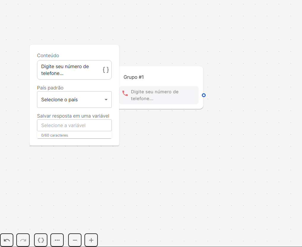 - Botão {} => Serve para criar variáveis globais no chatbot (Editar nome ou excluir);