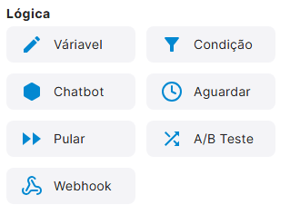 Os blocos de lógica permitem controlar o comportamento e o direcionamento do fluxo de atendimento com base em regras, condições e integrações. Eles não interagem diretamente com o contato, mas estruturam o caminho que o atendimento deve seguir.