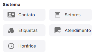 Os blocos de Sistema permitem executar ações diretamente relacionadas ao contato, ao atendimento, aos setores e aos horários de funcionamento definidos na plataforma. Esses blocos são essenciais para controlar a experiência do usuário e automatizar processos operacionais no fluxo.