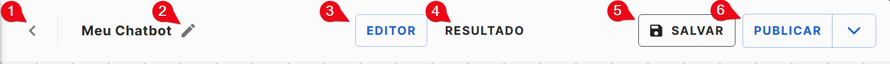 - Botão editor => Leva para a aba de edição do chatbot;