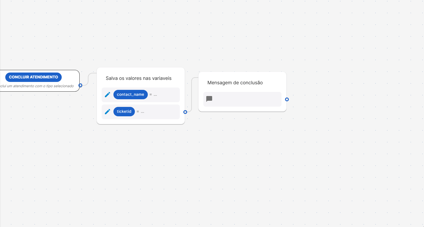 OBS: Nas opções de iniciar e retomar atendimento, é possível salvar em uma variável a primeira resposta do contato.