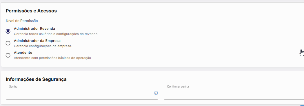 Em Permissões e Acessos, você define o que ele pode acessar e fazer dentro da plataforma, edite para a que melhor atende.