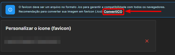 Acima do campo de envio, deixamos um link para converter uma imagem comum para o formato .ico